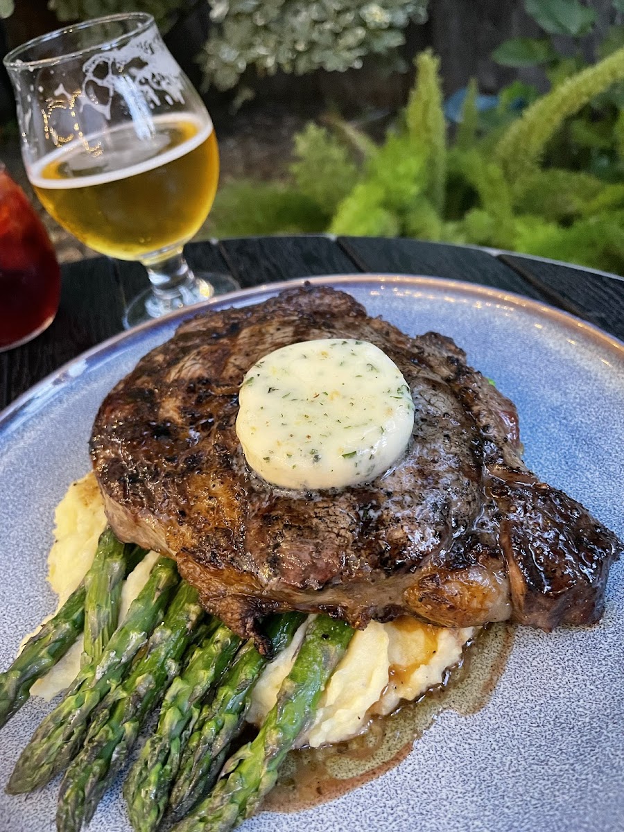 Ribeye Steak with Mashed Potatoes and Asparagus